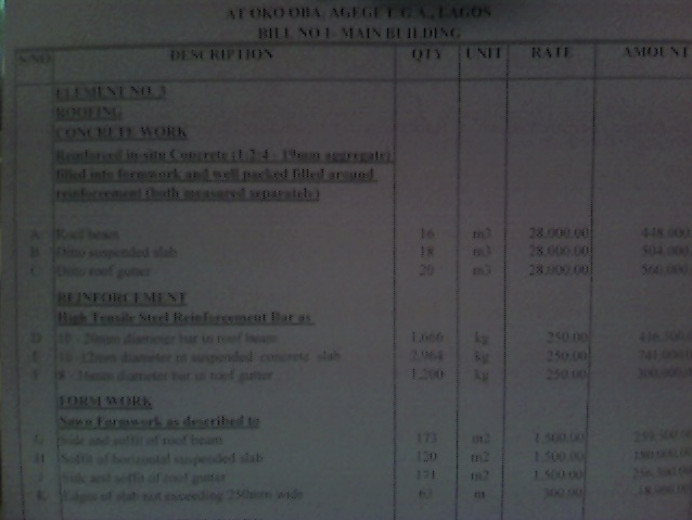 I have worked in a Contracting and Consulting Firm.I held the position of a Manager, Consultant Quantity Surveyor, Contractor Quantity surveyor and a Contractor. Moreover, my experience which Includes: Ensuring project from inception to completion, Procuring materials based on specifications, Treating all necessary correspondence on time, Ensuring compliance of work done adhering to targeted Budget. Furthermore, am rightly a Manager of my company (Construction coy.) which I also render other services in Computer business. Our services are basically on Typing and Printing of all required aspect, Photocopy, Scanning, Proofreading e.t.c.